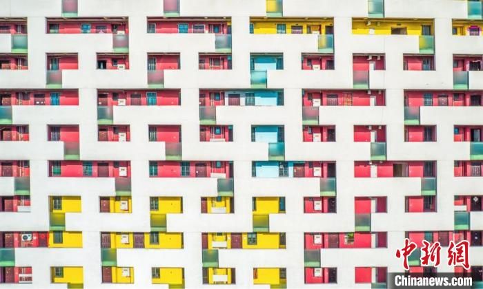 图为被粉刷成红色、黄色、蓝色、白色的“迷宫楼”。 殷缘 摄